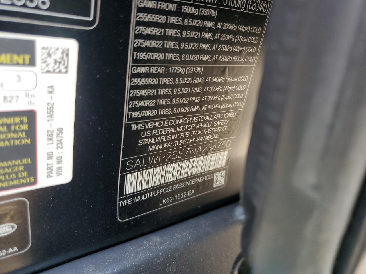 2022 LAND ROVER RANGE ROVER SPORT | SALWR2SE7NA234750