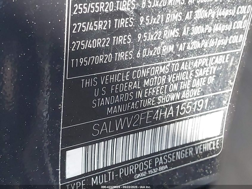 2017 LAND ROVER RANGE ROVER SPORT | SALWV2FE4HA155191