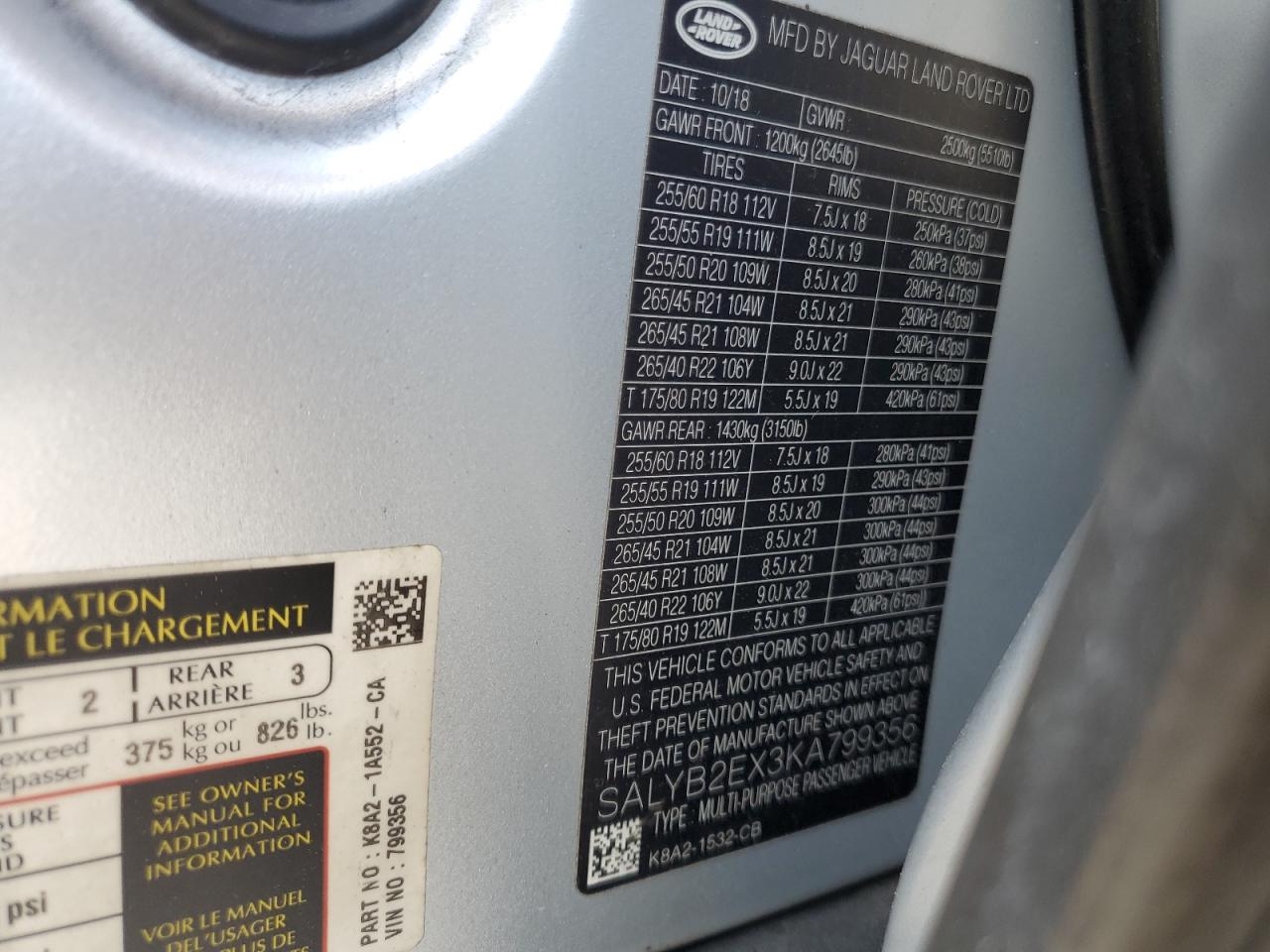 2019 LAND ROVER RANGE ROVER VELAR | SALYB2EX3KA799356