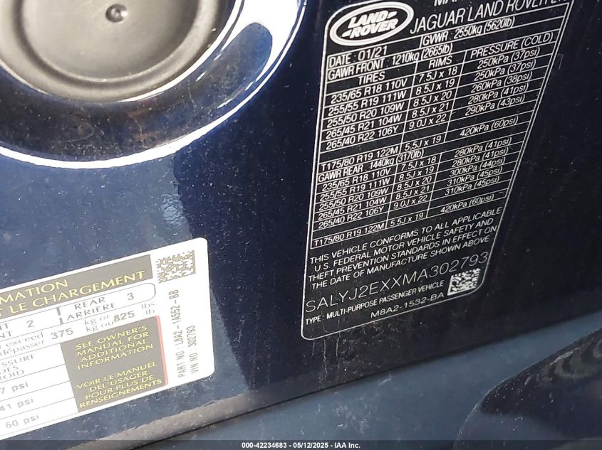 2021 LAND ROVER RANGE ROVER VELAR | SALYJ2EXXMA302793