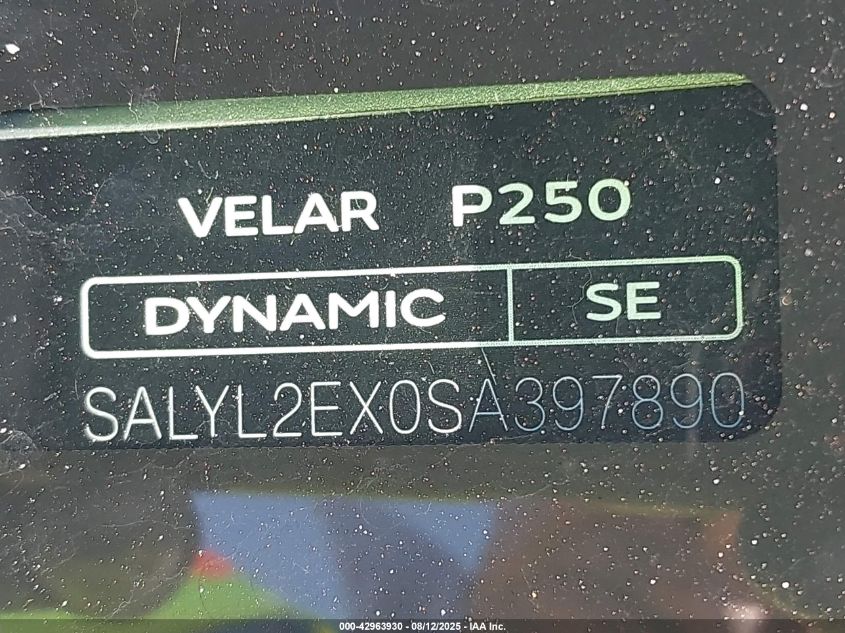 2025 LAND ROVER RANGE ROVER VELAR | SALYL2EX0SA397890