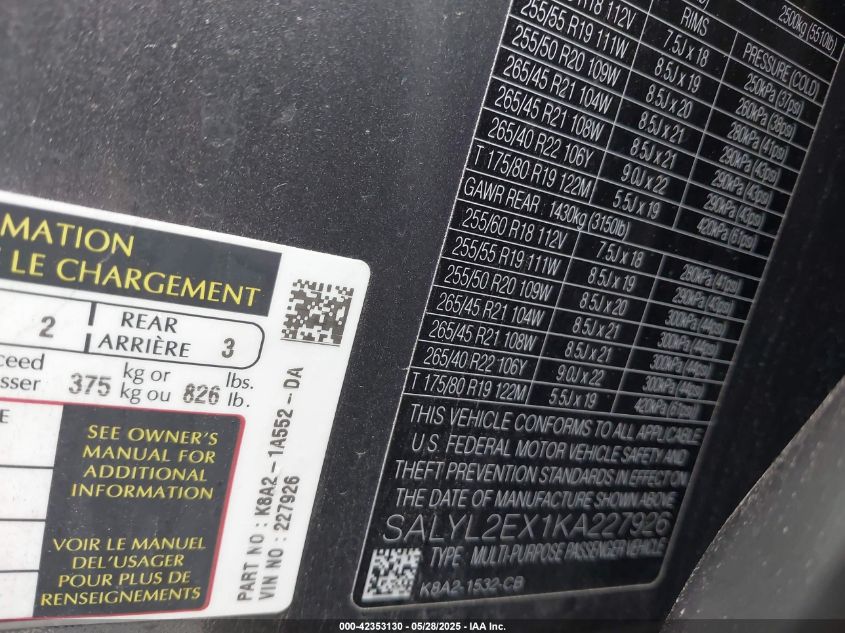 2019 LAND ROVER RANGE ROVER VELAR | SALYL2EX1KA227926