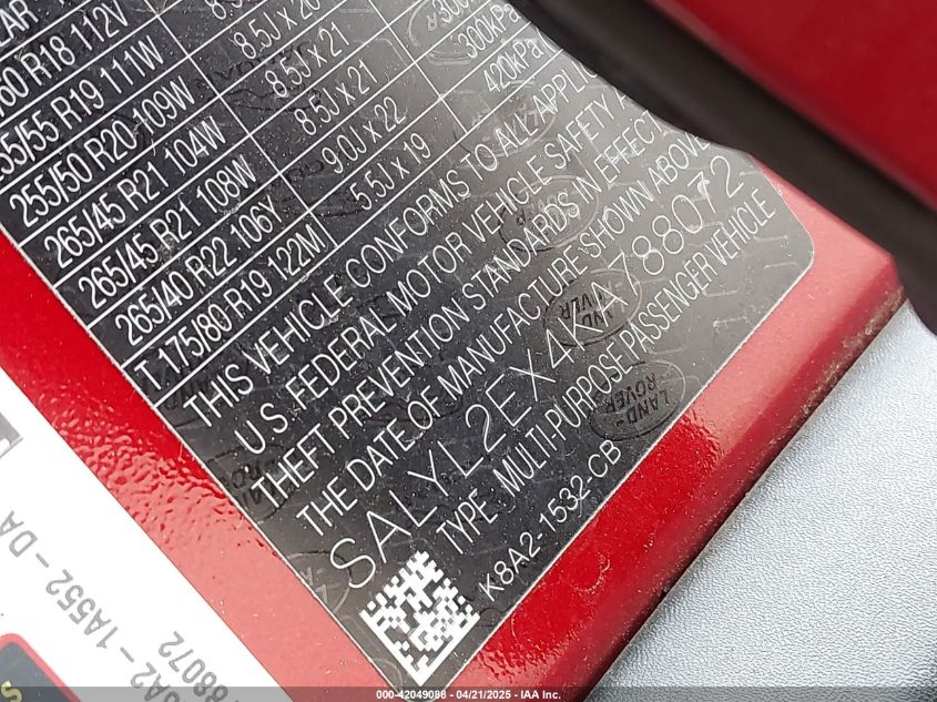 2019 LAND ROVER RANGE ROVER VELAR | SALYL2EX4KA788072