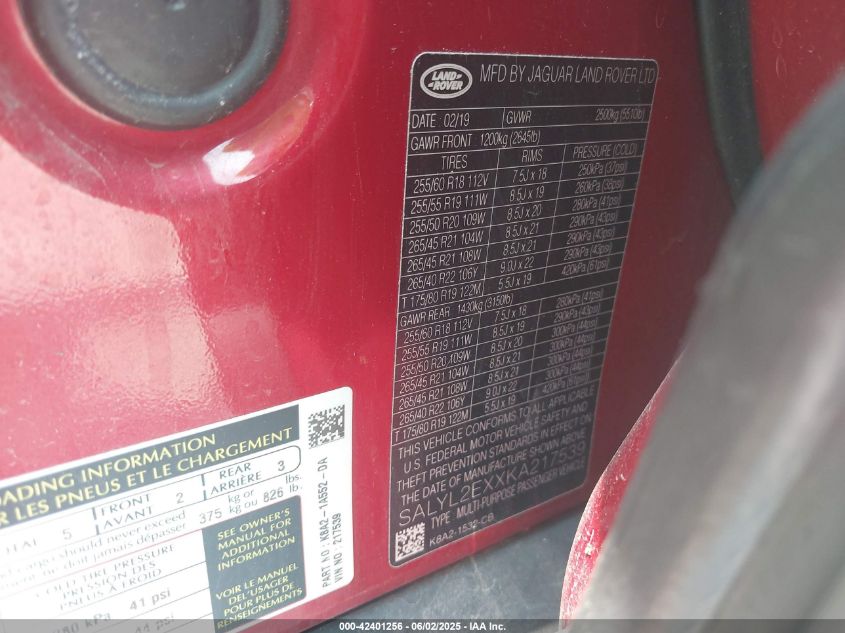2019 LAND ROVER RANGE ROVER VELAR | SALYL2EXXKA217539