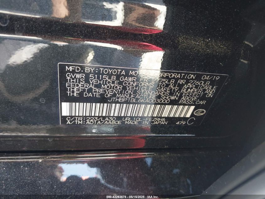2019 LEXUS GS | JTHBP1BL6KA003000