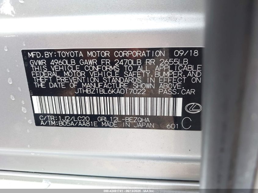 2019 LEXUS GS | JTHBZ1BL6KA017022