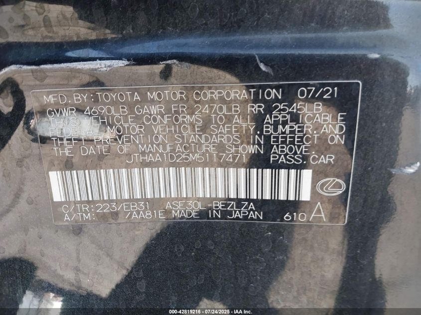 2021 LEXUS IS | JTHAA1D25M5117471