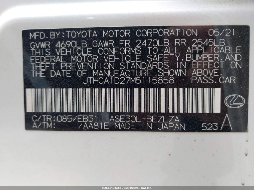 2021 LEXUS IS | JTHCA1D27M5115858