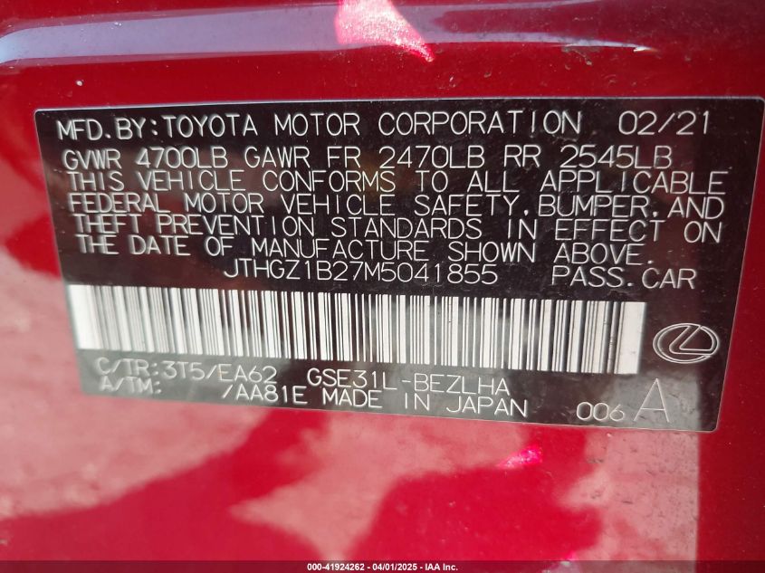 2021 LEXUS IS | JTHGZ1B27M5041855