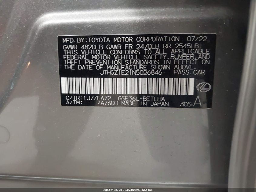 2022 LEXUS IS | JTHGZ1E21N5026846