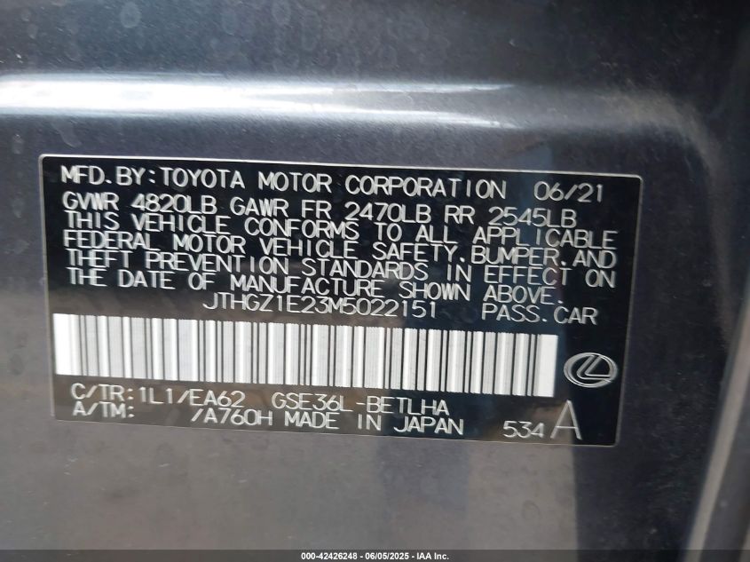 2021 LEXUS IS | JTHGZ1E23M5022151