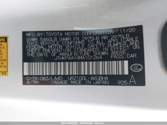 2021 LEXUS LC | JTHKPAAY4MA101264