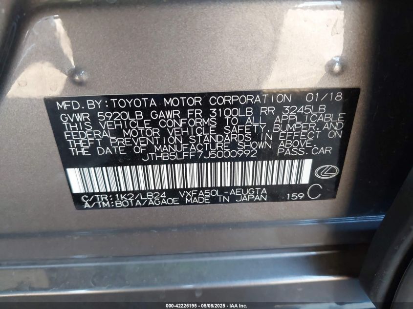 2018 LEXUS LS | JTHB5LFF7J5000992