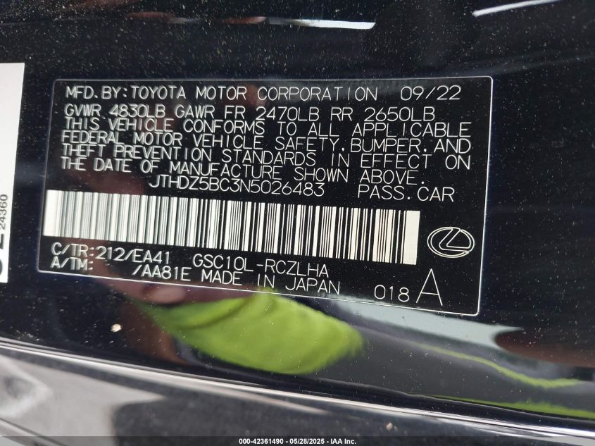 2022 LEXUS RC | JTHDZ5BC3N5026483