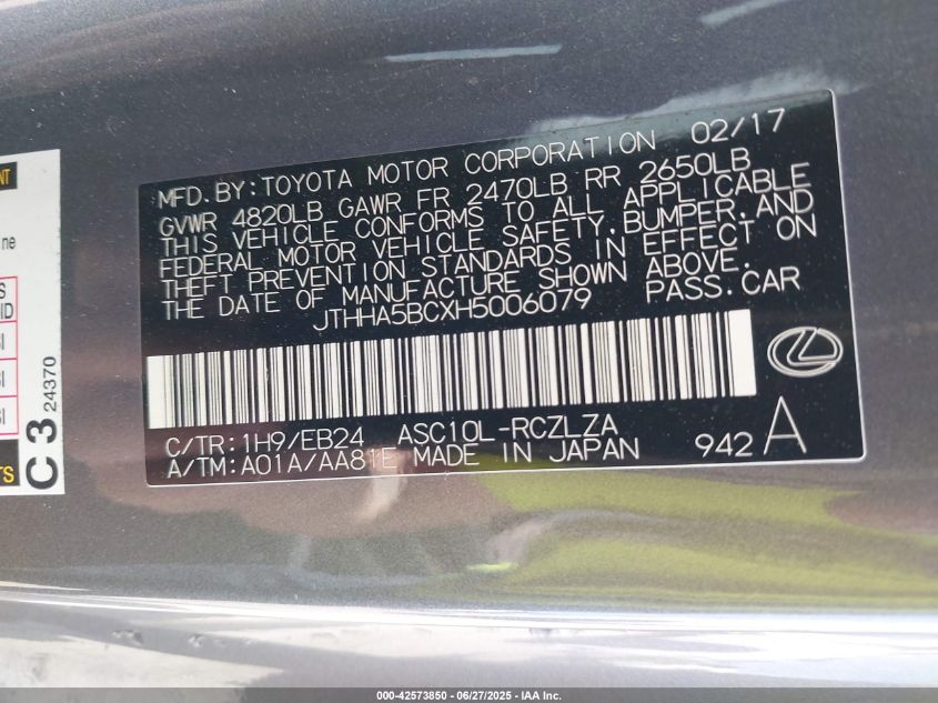 2017 LEXUS RC | JTHHA5BCXH5006079