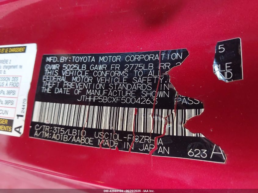 2015 LEXUS RC | JTHHP5BCXF5004263