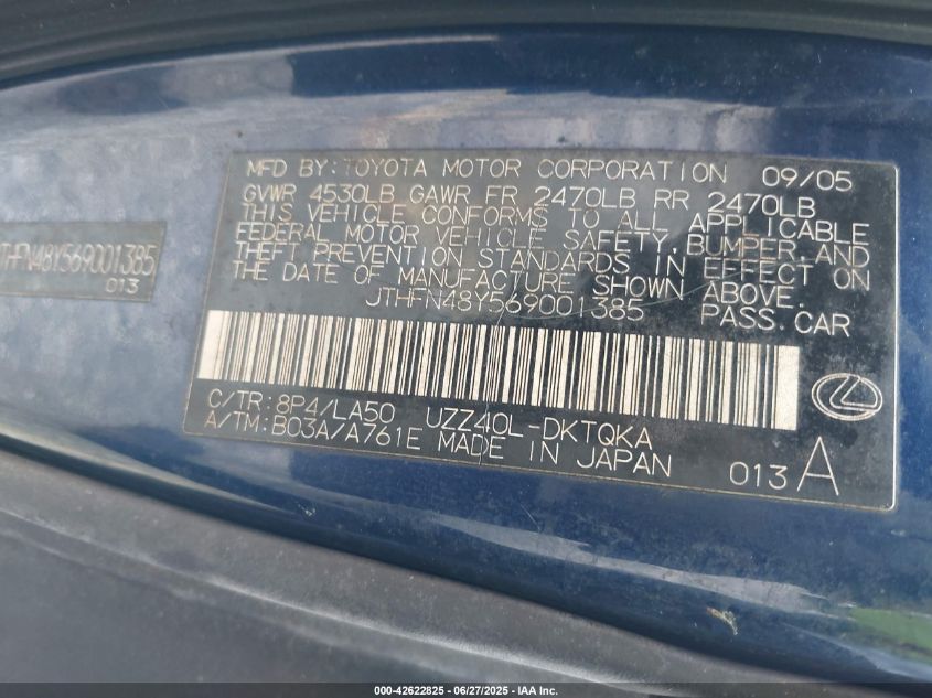 2006 LEXUS SC | JTHFN48Y569001385