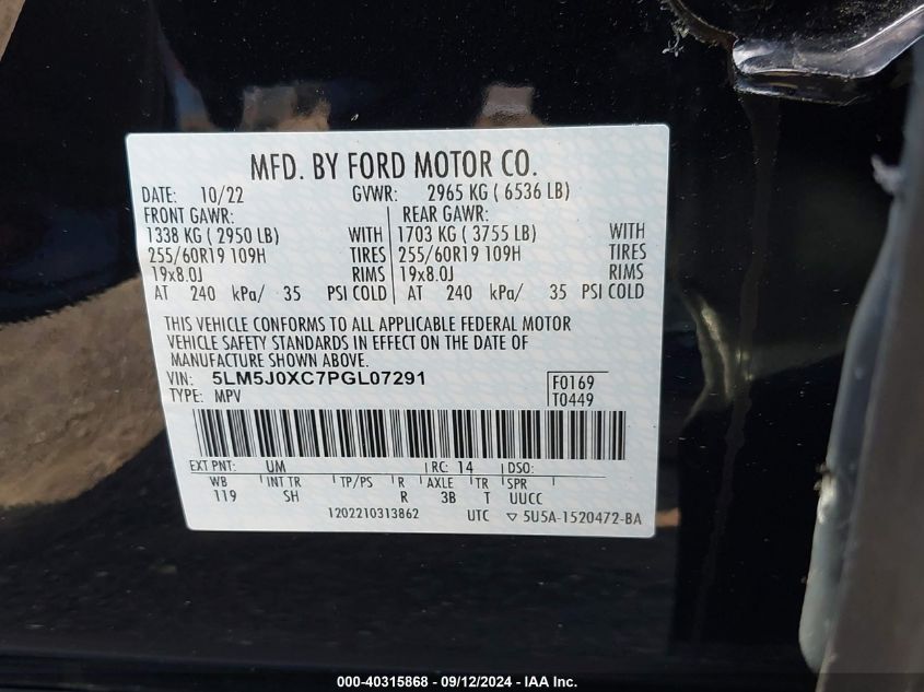 2023 LINCOLN AVIATOR | 5LM5J0XC7PGL07291