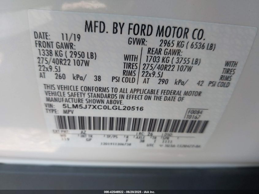 2020 LINCOLN AVIATOR | 5LM5J7XC0LGL20516
