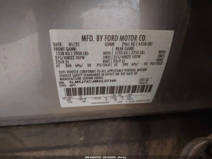2021 LINCOLN AVIATOR | 5LM5J7XC4MGL07348
