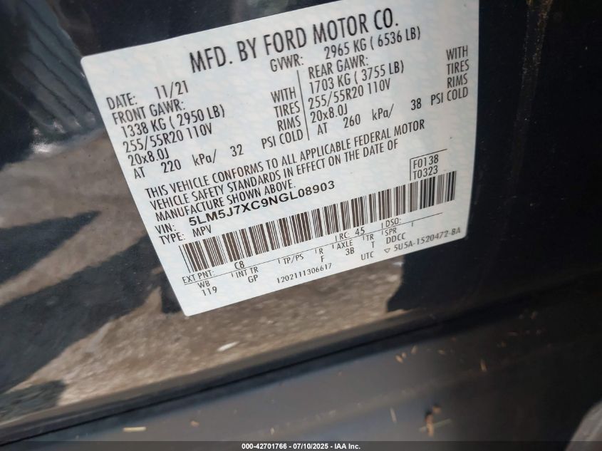 2022 LINCOLN AVIATOR | 5LM5J7XC9NGL08903