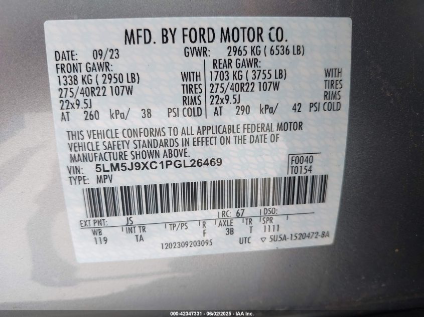 2023 LINCOLN AVIATOR | 5LM5J9XC1PGL26469