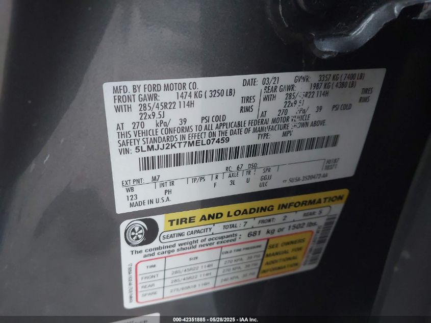 2021 LINCOLN NAVIGATOR | 5LMJJ2KT7MEL07459