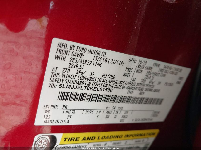 2019 LINCOLN NAVIGATOR | 5LMJJ2LT0KEL01580