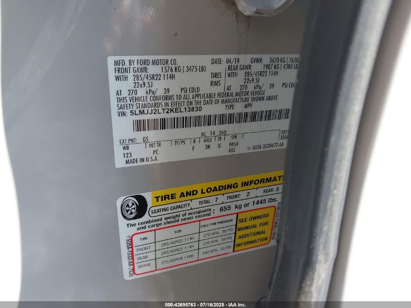 2019 LINCOLN NAVIGATOR | 5LMJJ2LT2KEL13830