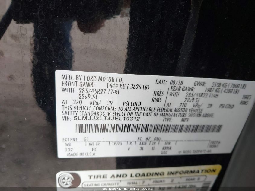 2018 LINCOLN NAVIGATOR L | 5LMJJ3LT4JEL19312