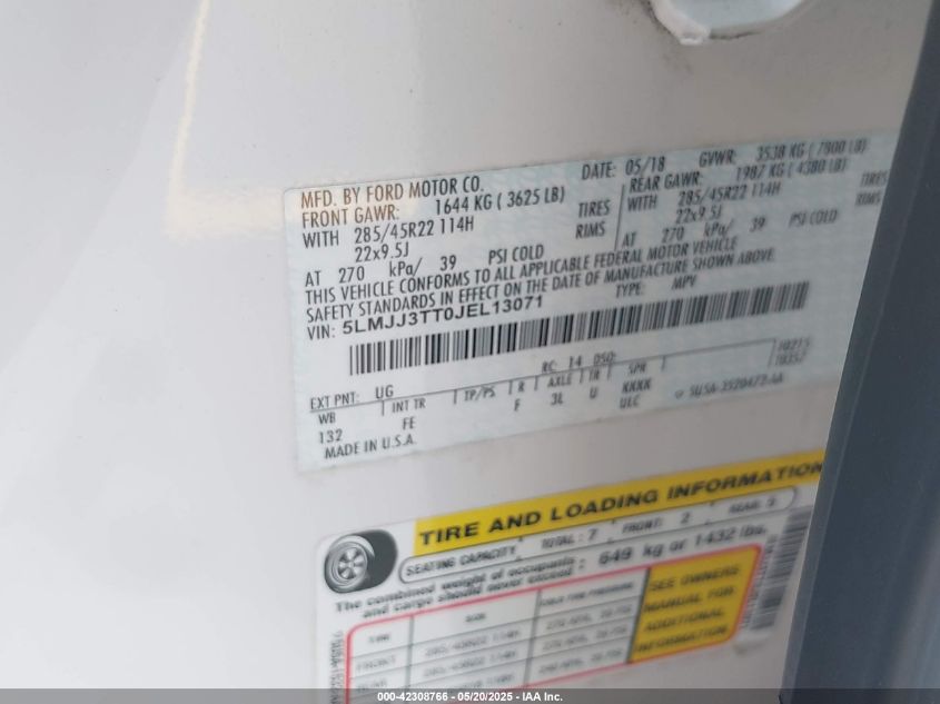 2018 LINCOLN NAVIGATOR L | 5LMJJ3TT0JEL13071