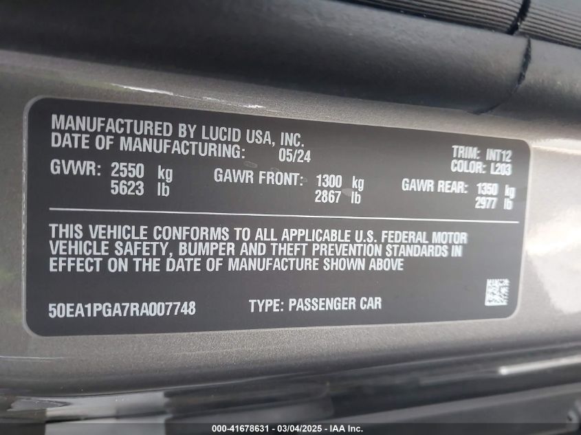 2024 LUCID AIR | 50EA1PGA7RA007748