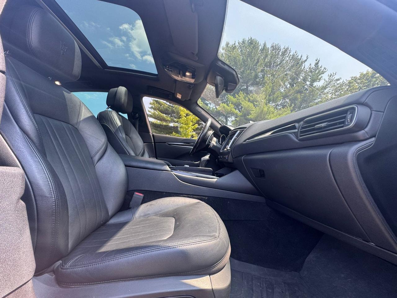 The Levante was offered in an extensive palette of exterior colors, ranging from deep metallic blues like Blu Emozione and Blu Nobile to classic tones like Grigio Maratea, Bianco Alpi, and Nero Ribelle. Special editions and Trofeo models included bolder finishes such as Rosso Magma and matte Grigio Lava, enhancing the muscular surfaces and dynamic contours of the bodywork. Dark chrome accents, gloss black grille surrounds, and carbon fiber mirror caps further distinguished high-performance trims.