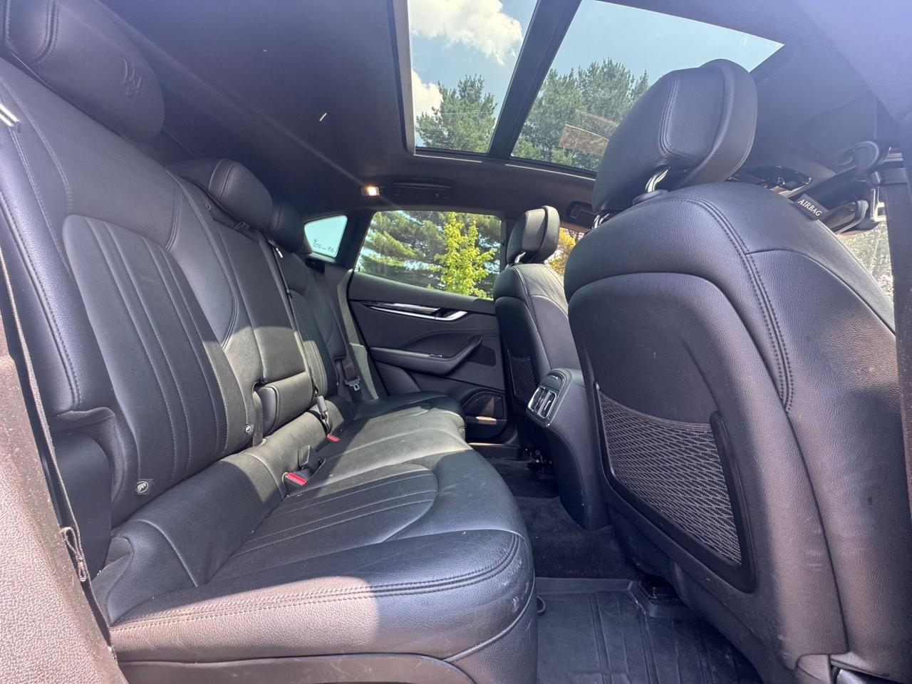 Inside, the Levante showcased Italian craftsmanship with options including full-grain leather, open-pore wood, high-gloss piano black, carbon fiber, and aluminum inlays. The optional Zegna silk interior was one of the most unique offerings in the segment, combining luxury tailoring with automotive function. Color schemes included combinations like Cuoio with Nero piping, Rosso leather with carbon fiber accents, and Sabbia interiors with open-pore wood for a classic luxury feel.