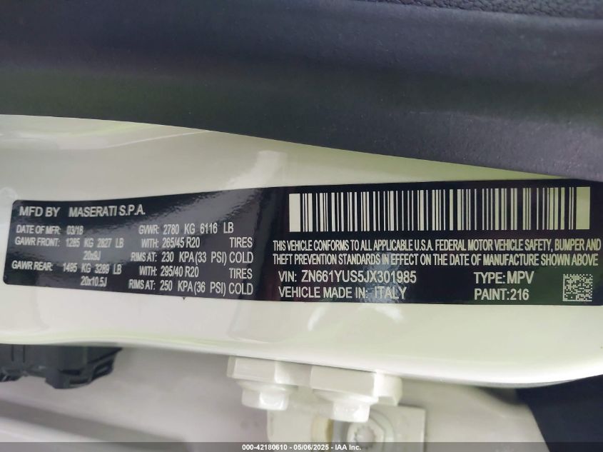2018 MASERATI LEVANTE | ZN661YUS5JX301985