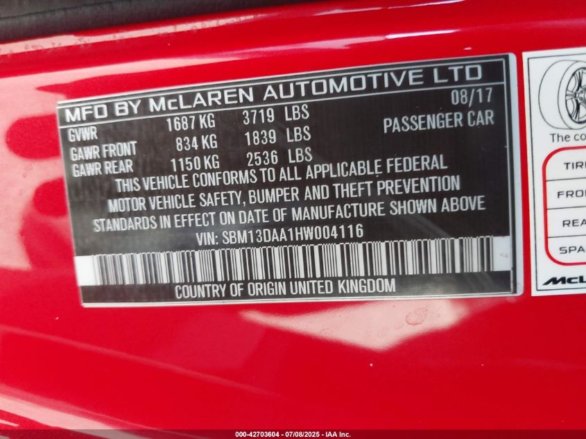2017 MCLAREN 570S | SBM13DAA1HW004116