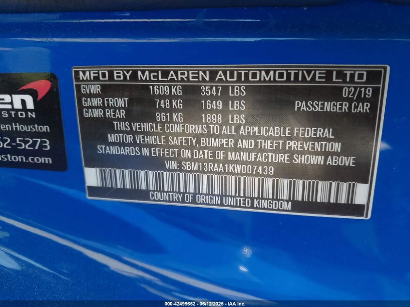 2019 MCLAREN 600LT | SBM13RAA1KW007439