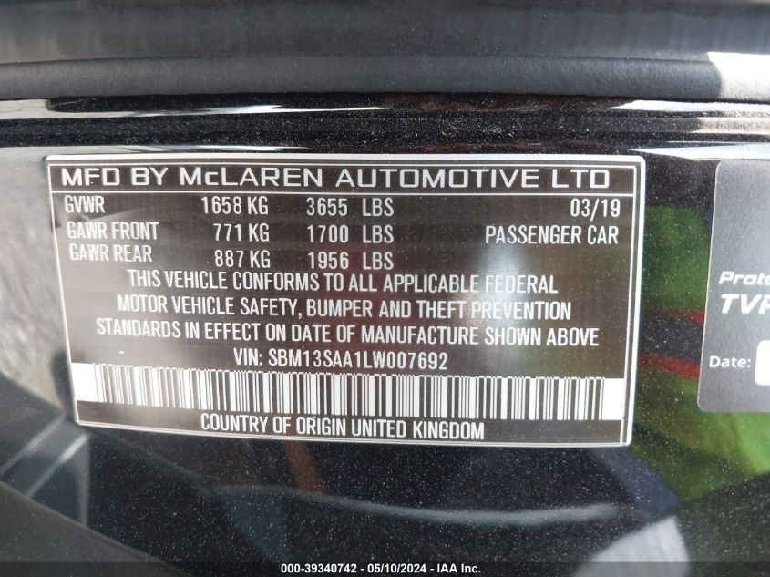 2020 MCLAREN 600LT | SBM13SAA1LW007692