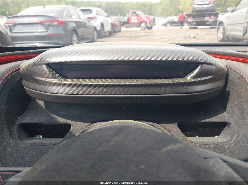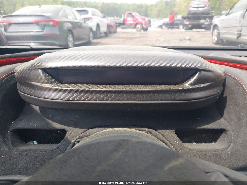 The digital driver display featured a folding TFT screen that dropped into a minimalist strip mode for track driving. The infotainment system was portrait-oriented and integrated with telematics, navigation, media, and optional telemetry/lap timing functions.
