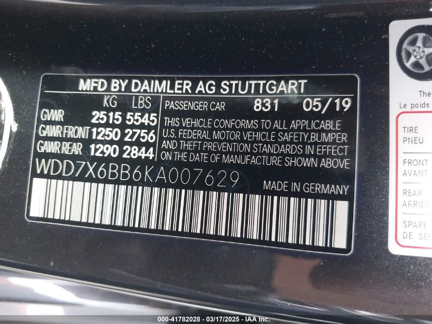 2019 MERCEDES-BENZ AMG GT | WDD7X6BB6KA007629