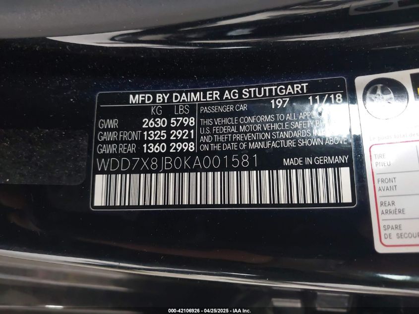 2019 MERCEDES-BENZ AMG GT | WDD7X8JB0KA001581