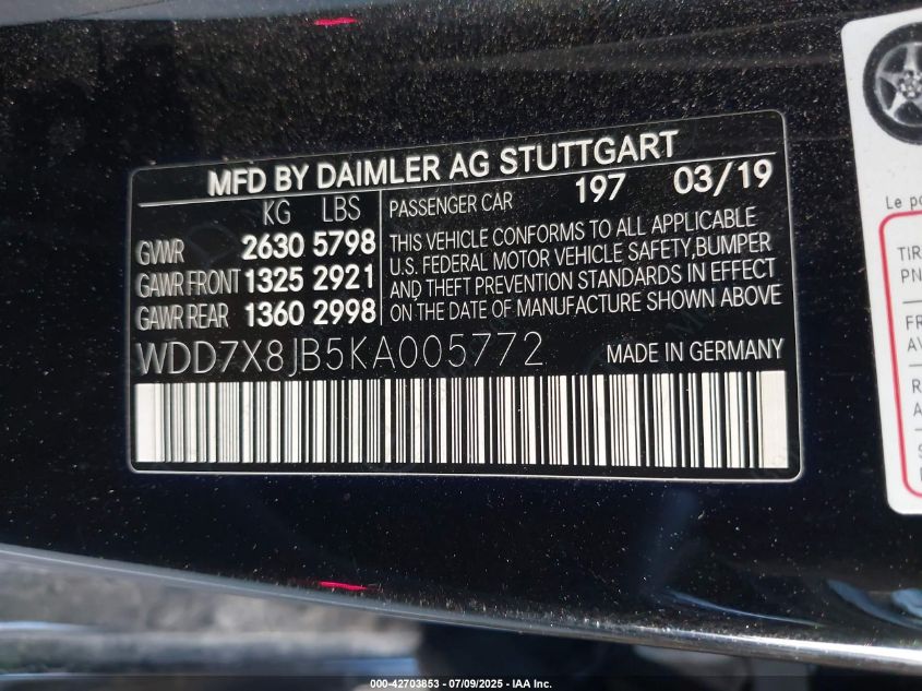 2019 MERCEDES-BENZ AMG GT | WDD7X8JB5KA005772