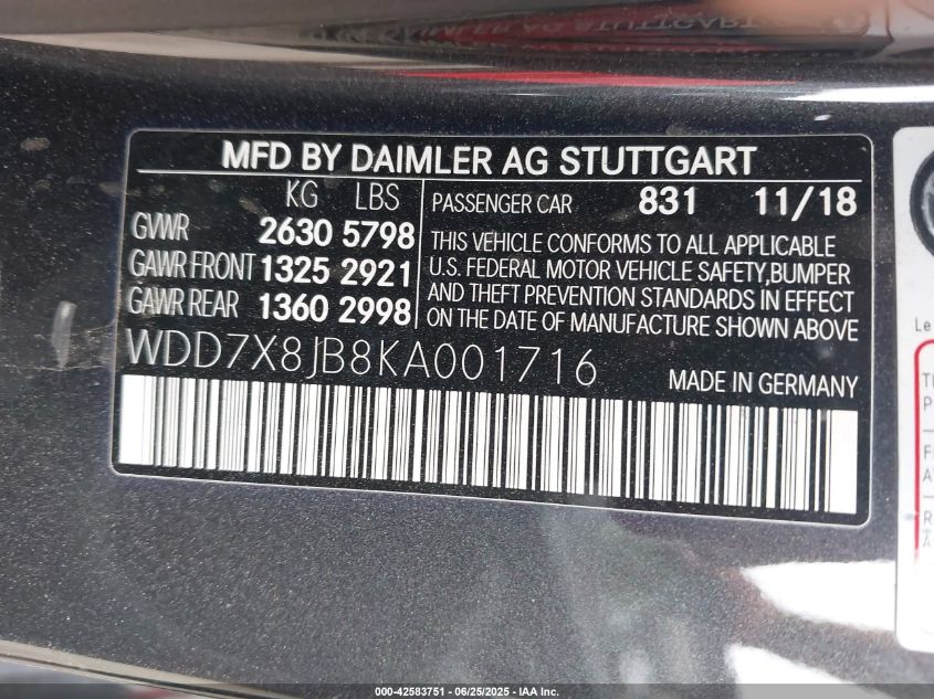 2019 MERCEDES-BENZ AMG GT | WDD7X8JB8KA001716