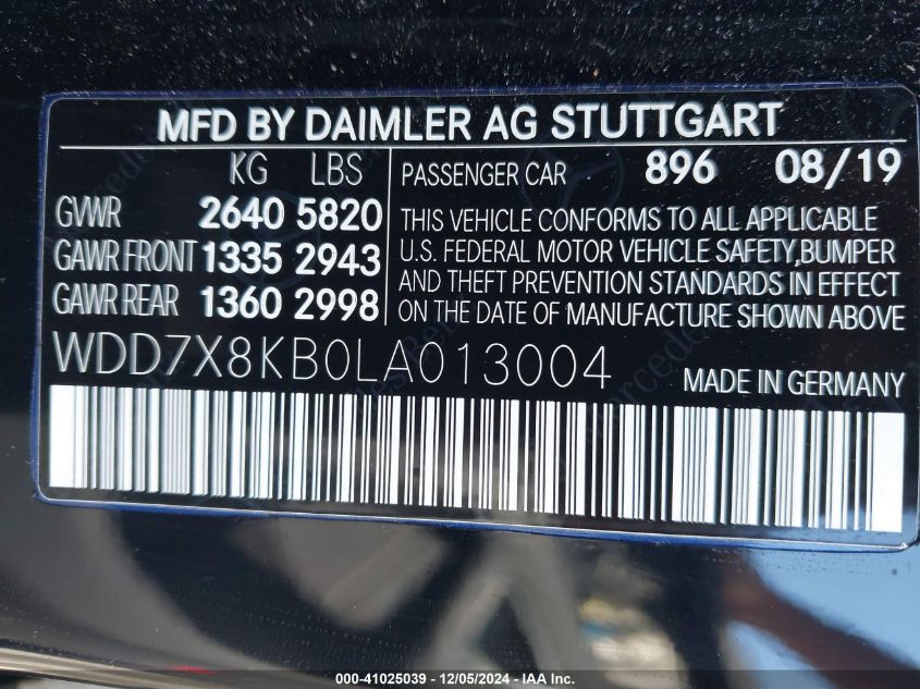 2020 MERCEDES-BENZ AMG GT | WDD7X8KB0LA013004