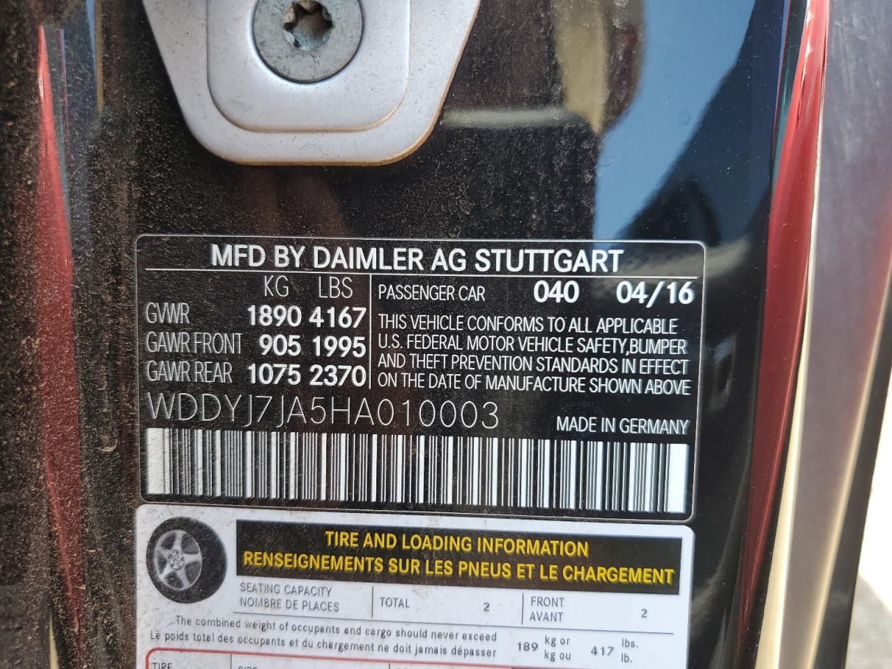 2017 MERCEDES-BENZ AMG GT | WDDYJ7JA5HA010003