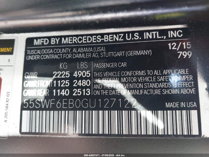 2016 MERCEDES-BENZ C-CLASS | 55SWF6EB0GU127122