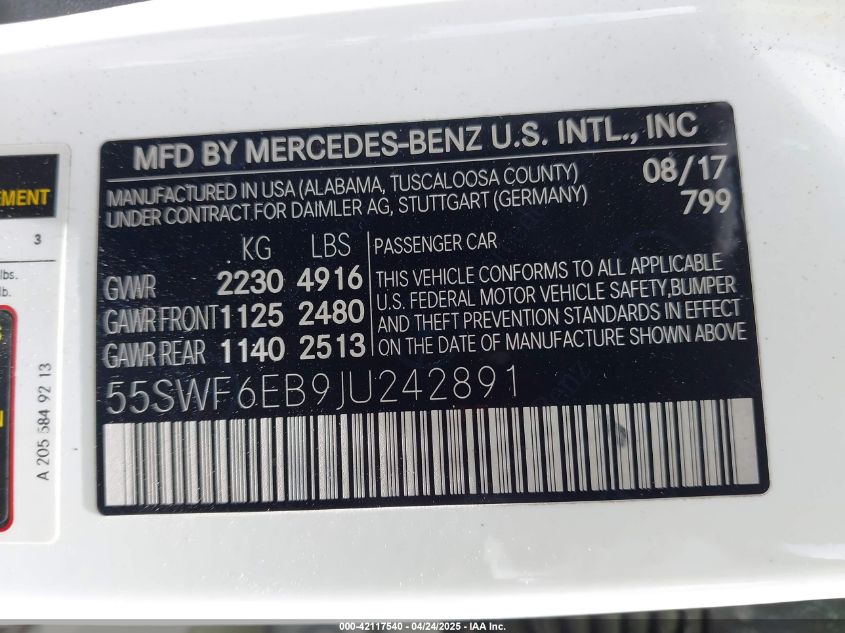 2018 MERCEDES-BENZ C-CLASS | 55SWF6EB9JU242891