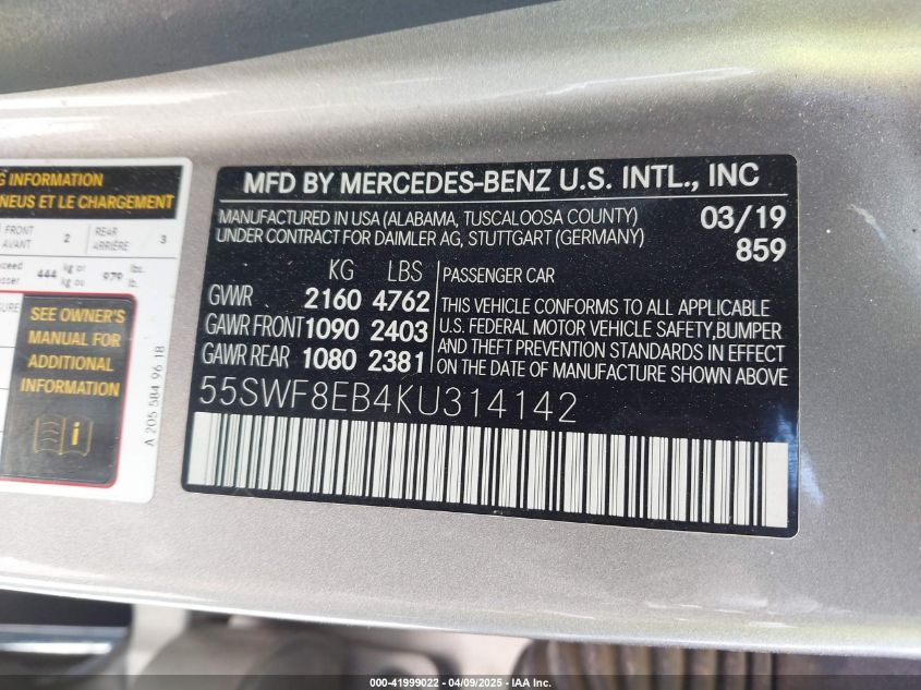 2019 MERCEDES-BENZ C-CLASS | 55SWF8EB4KU314142