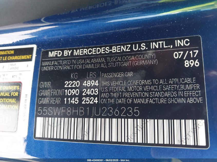 2018 MERCEDES-BENZ C-CLASS | 55SWF8HB1JU236235