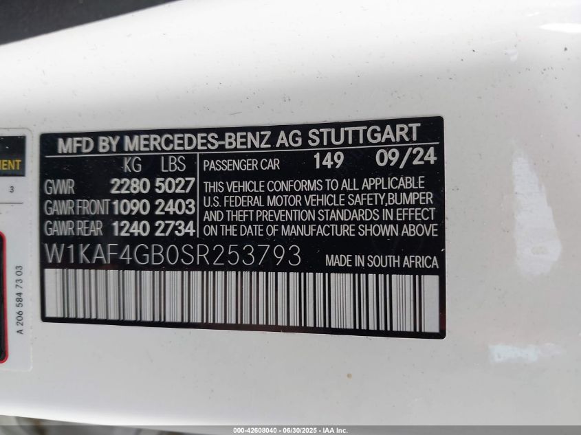 2025 MERCEDES-BENZ C-CLASS | W1KAF4GB0SR253793